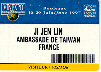 筆者於1995年參加「布魯塞爾─台灣」 筆者於1997年6月參加波爾多世界酒展之識別證